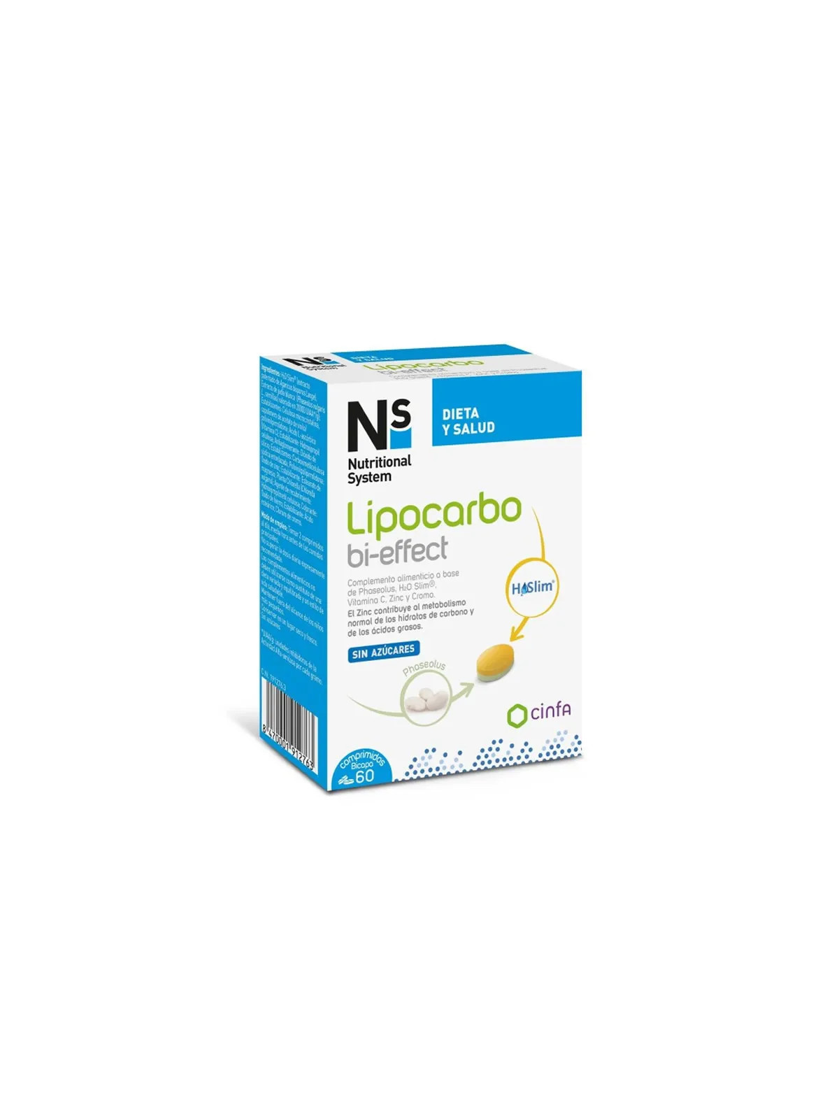 NS Lipocarbo Bi-Effet est un complément alimentaire minceur innovant développé par les laboratoires Cinfa. Sa formule à double action cible à la fois l'absorption des graisses et des glucides pour une approche complète du contrôle du poids.