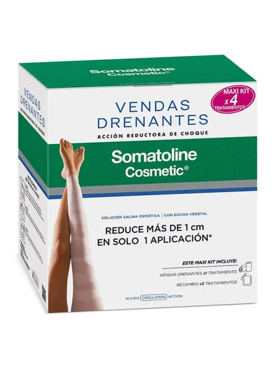 Le Maxi Kit Bandages Drainants de Somatoline est un coffret complet de 4 pièces pour un traitement intensif anti-cellulite et drainant. Ce kit professionnel permet de réaliser des soins enveloppants efficaces dans le confort de votre domicile.