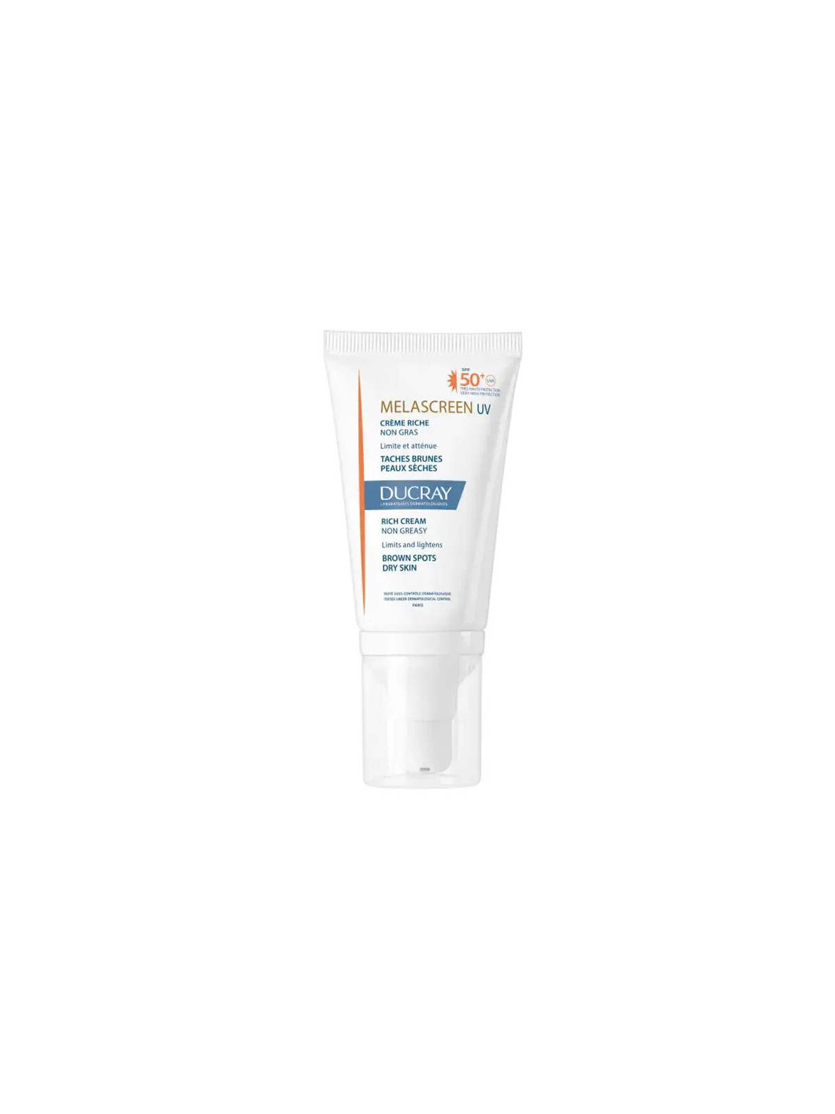 La Crème Riche Melascreen UV SPF50+ de Ducray 40ml est un soin quotidien qui combine action anti-taches et très haute protection solaire. Cette texture riche est spécialement conçue pour les peaux sèches.