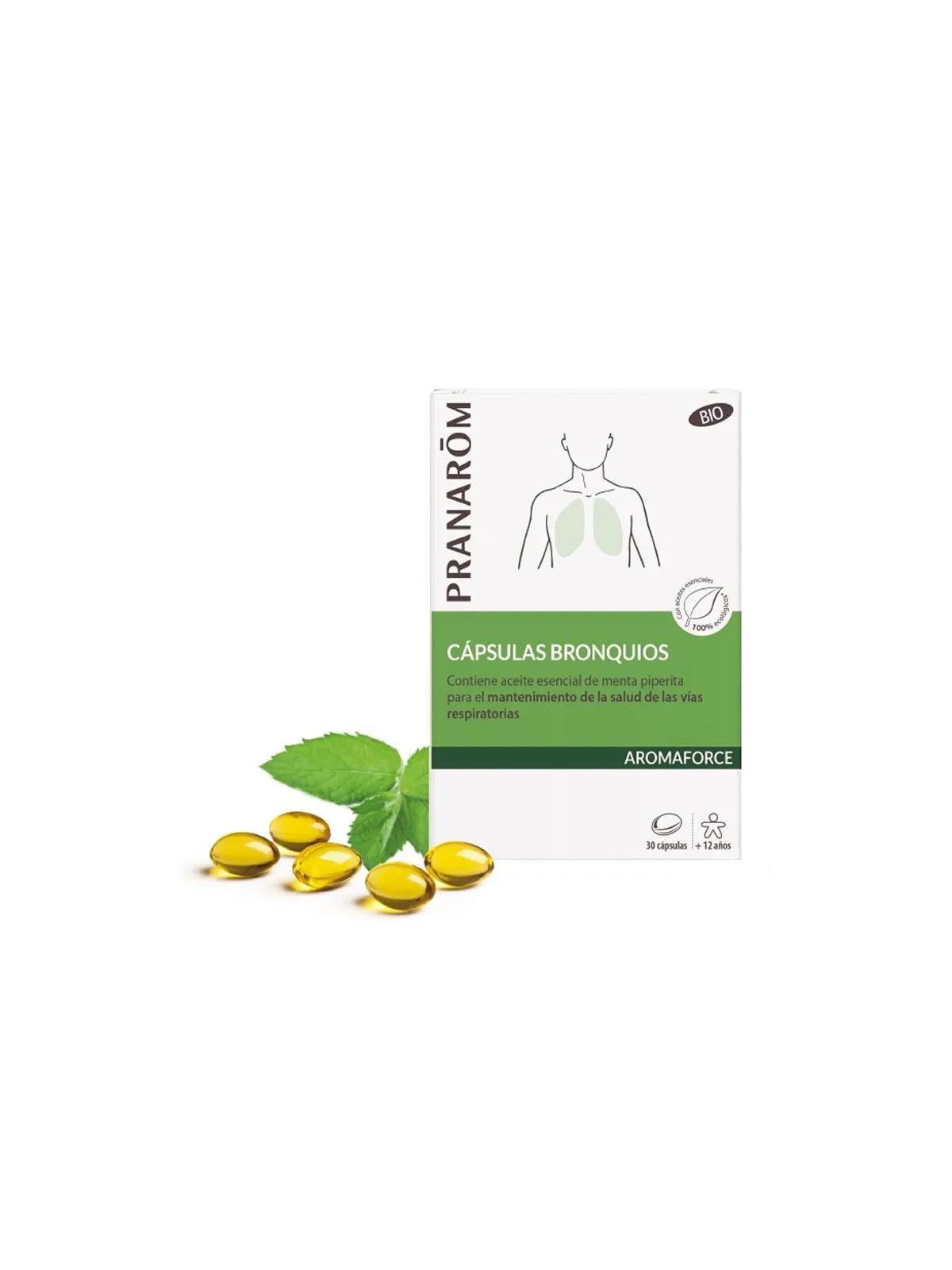 Pranarôm Aromaforce Bronches Bio est un complément alimentaire certifié biologique, élaboré pour soutenir le bon fonctionnement des voies respiratoires basses et favoriser le confort bronchique.