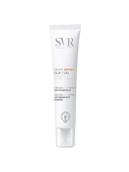 La Crème Clairial SPF50+ de SVR est un soin visage anti-taches à très haute protection solaire, spécialement formulé pour prévenir l'apparition des taches pigmentaires et atténuer celles déjà présentes.