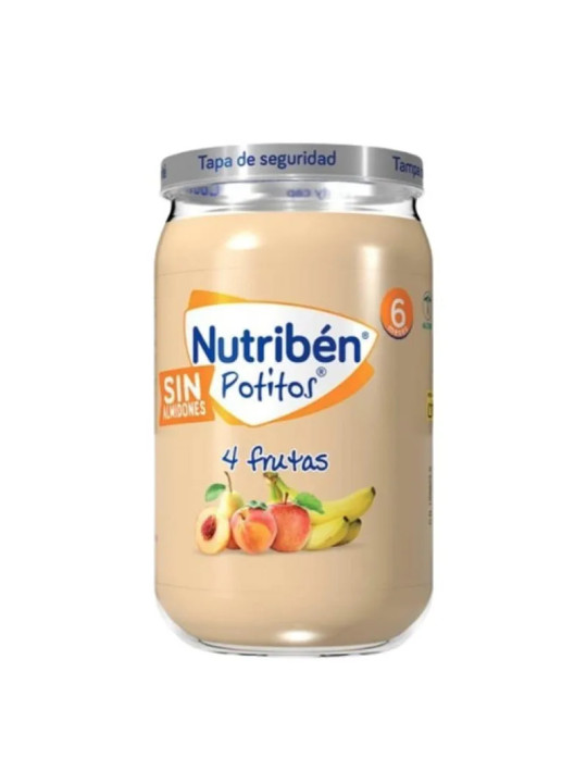 Le Nutribén Pot 4 Fruits est une compote de 235g élaborée par Nutribén pour le goûter ou le dessert de bébé. Cette recette associe quatre fruits savoureux pour éveiller les papilles des tout-petits aux saveurs fruitées naturelles.