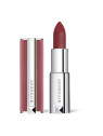 La formule est enrichie en huile de rose musquée et en agents hydratants qui prennent soin des lèvres tout au long du port. Malgré son fini mat, ce rouge à lèvres ne dessèche pas et maintient les lèvres confortables. Le packaging couture signature de Givenchy, avec son étui en cuir noir et son fermoir argenté, en fait un objet de beauté désirable.