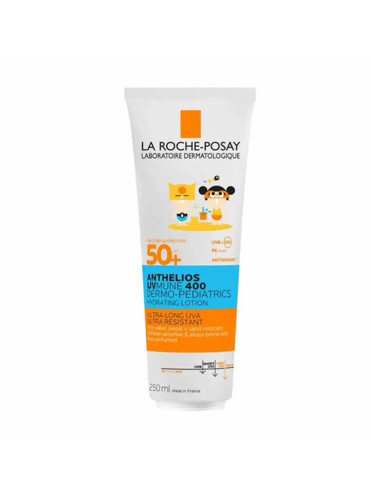 Le lait solaire Anthelios Dermo-Pédiatrics SPF50 de La Roche-Posay est une protection solaire très haute spécialement conçue pour la peau délicate et sensible des enfants. Ce lait offre une protection optimale contre les rayons UVA et UVB grâce au système filtrant haute performance de la gamme Anthelios.