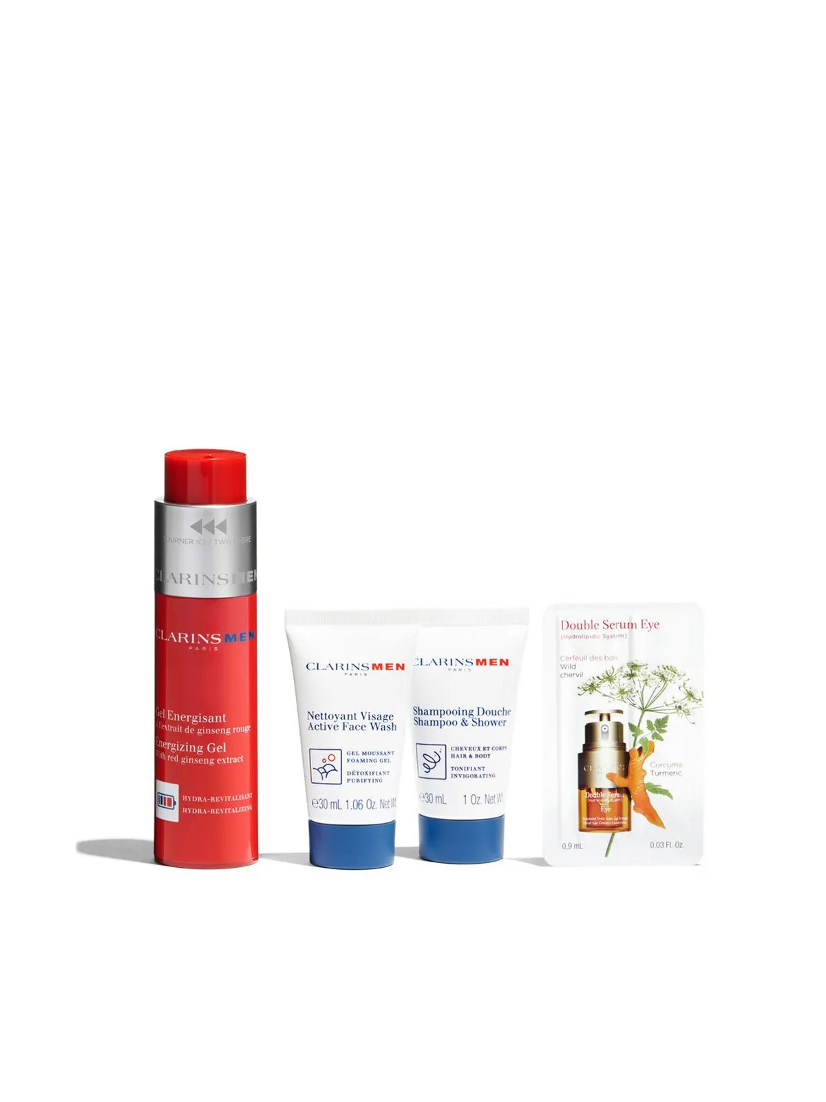 Le shampooing de 30ml et le nettoyant de 30ml complètent parfaitement cette routine. Le nettoyant purifie la peau en douceur tandis que le shampooing prend soin des cheveux avec la qualité Clarins. Ces formats voyage sont pratiques pour découvrir les produits ou pour les déplacements.