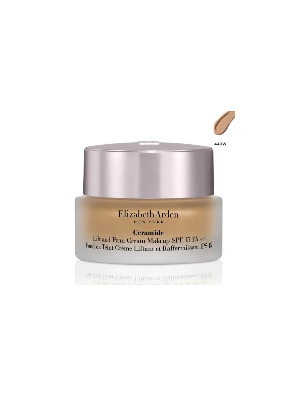 Le Fond de Teint Crème Ceramide Lift & Firm d'Elizabeth Arden en teinte 440W est un maquillage anti-âge haute performance qui allie couvrance impeccable et soins de la peau. Sa formule innovante aux céramides lisse et raffermit visiblement le visage tout au long de la journée.