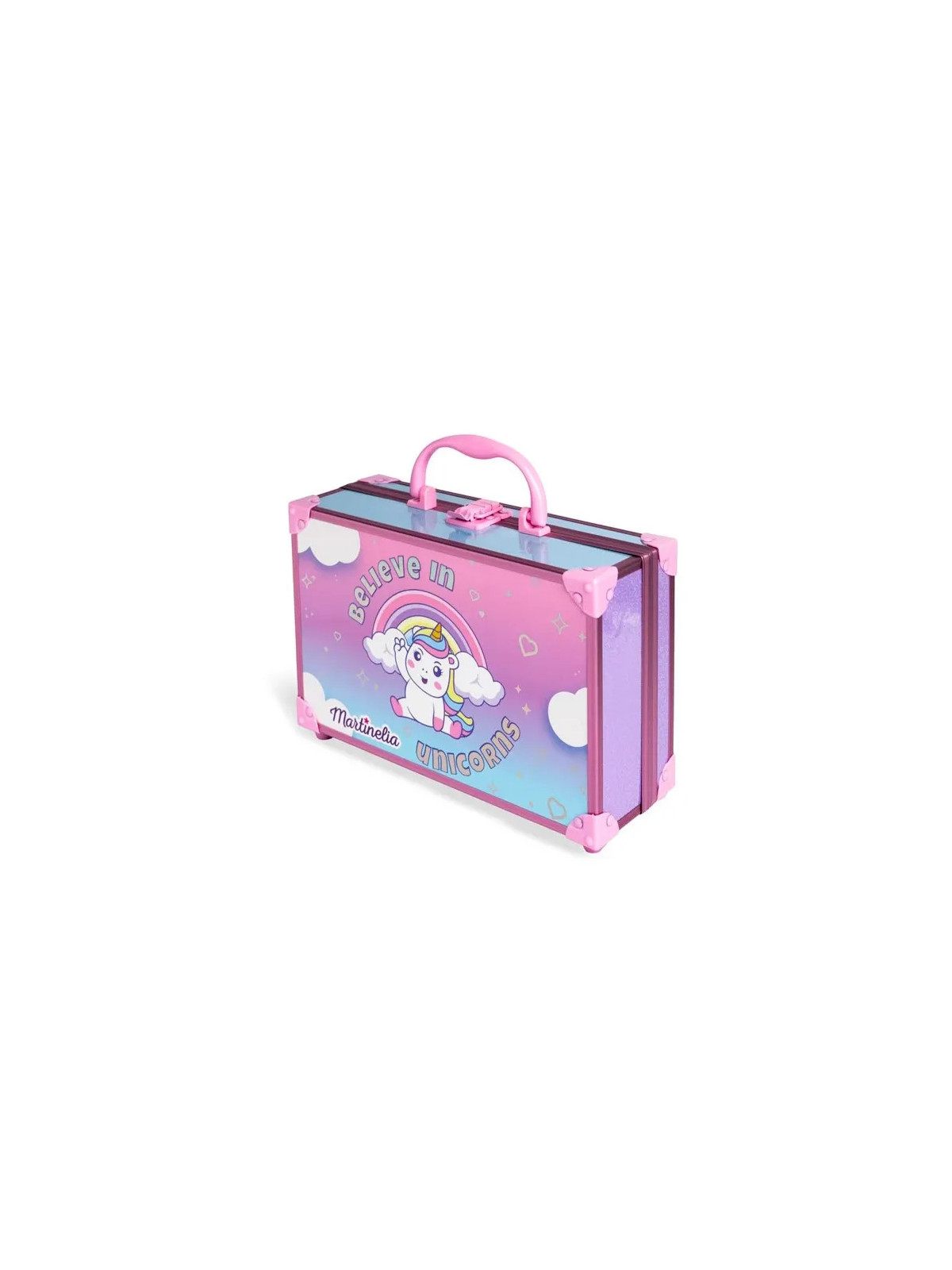 La mallette Martinelia Little Unicorn Perfect Traveller est un coffret de maquillage enchanté spécialement conçu pour les enfants. La marque Martinelia est réputée pour ses produits cosmétiques ludiques et adaptés aux plus jeunes, avec des packagings féeriques qui font rêver.