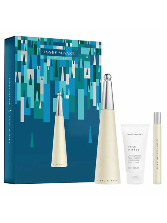 Ce coffret comprend l'Eau de Toilette L'Eau d'Issey en vaporisateur de 100ml, accompagnée de deux produits complémentaires pour une expérience olfactive complète. La fragrance ouvre sur des notes florales aqueuses de lotus et de freesia, se développe sur un coeur de pivoine et de muguet, avant de se poser sur un fond boisé d'ambre et de cèdre.