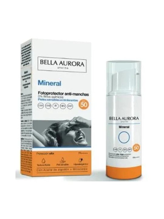 L'écran solaire minéral anti-taches Bella Aurora SPF50 est un soin solaire visage de 50ml offrant une très haute protection contre les rayons UVA et UVB tout en prévenant l'apparition des taches pigmentaires. Bella Aurora, marque espagnole experte en dépigmentation depuis plus de 100 ans, combine ici ses deux domaines d'expertise.