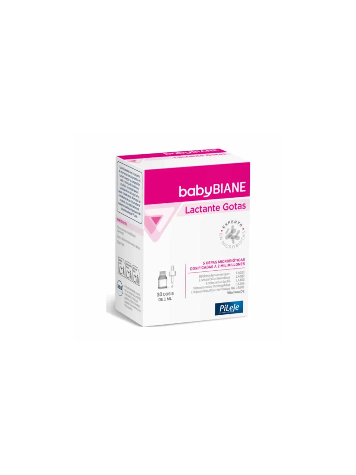 Pileje Babybiane Gouttes Nourrisson 30ml est un complément alimentaire à base de probiotiques spécialement formulé pour les nourrissons. Pileje est un laboratoire français de référence en micronutrition et en probiotiques, reconnu pour la qualité et l'efficacité de ses souches microbiotiques documentées.