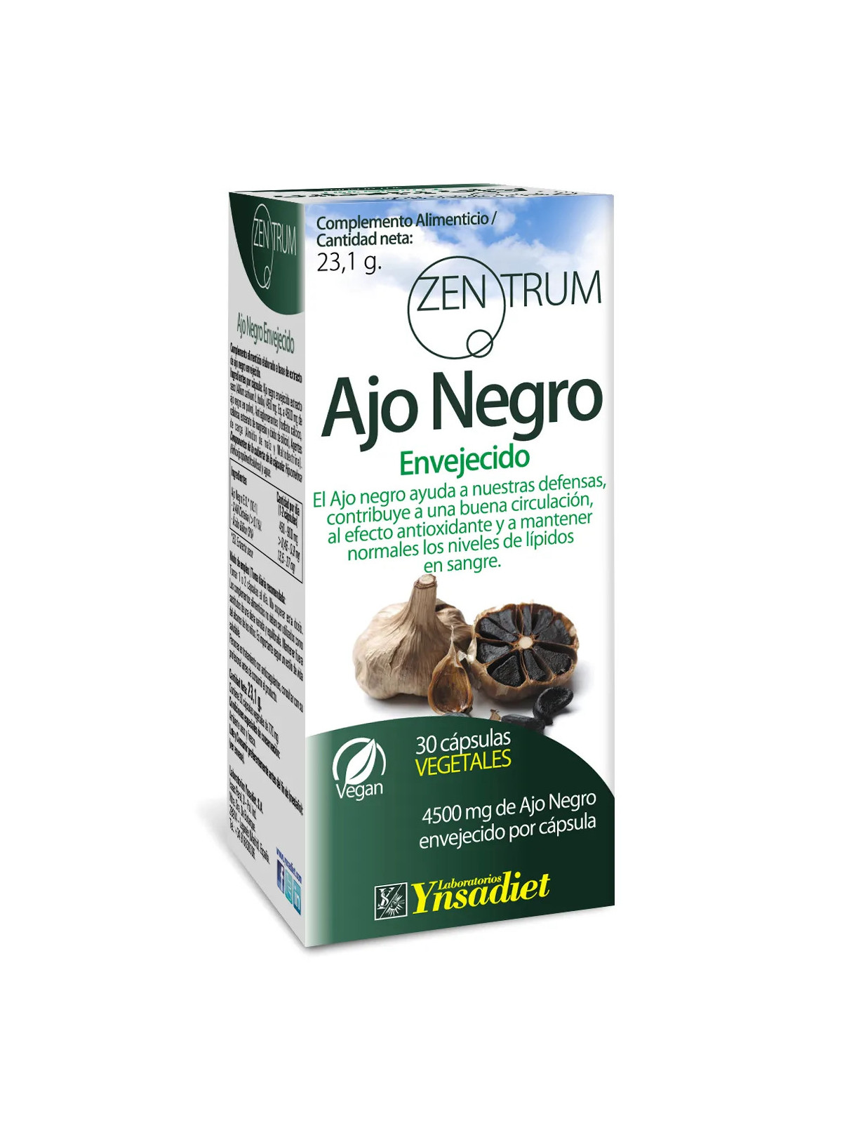 Le Zentrum Extrait d'Ail Noir Vieilli de Ynsadiet est un complément alimentaire premium présenté en boîte de 30 capsules. L'ail noir est obtenu par un processus de fermentation et de maturation de l'ail frais à température et humidité contrôlées, qui en décuple les propriétés bénéfiques.