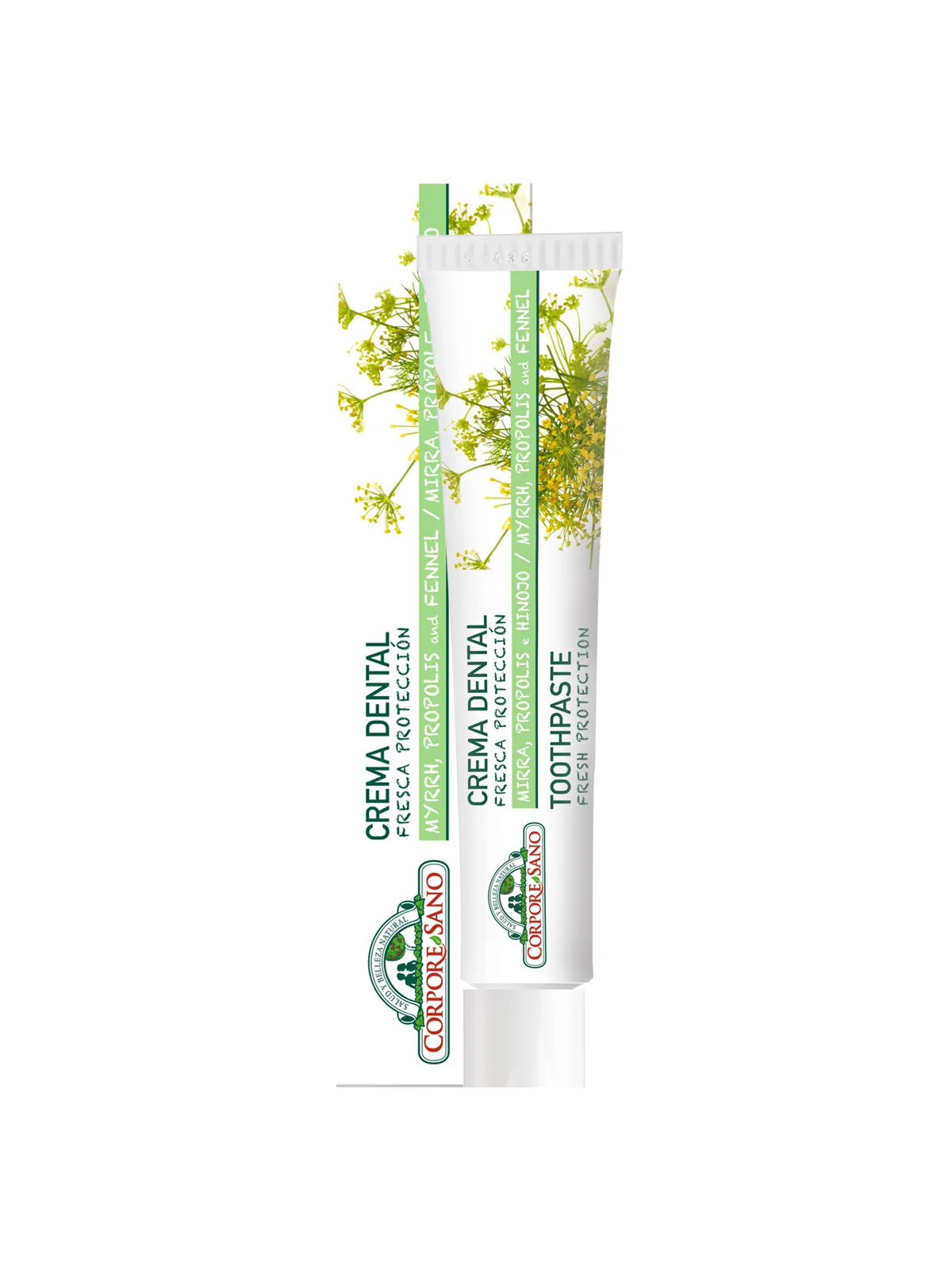 Le Dentifrice Propolis Myrrhe et Fenouil de Corpore est un soin bucco-dentaire naturel combinant trois ingrédients aux propriétés complémentaires pour une hygiène buccale optimale. Ce tube de 75ml offre une protection naturelle pour vos dents et gencives.