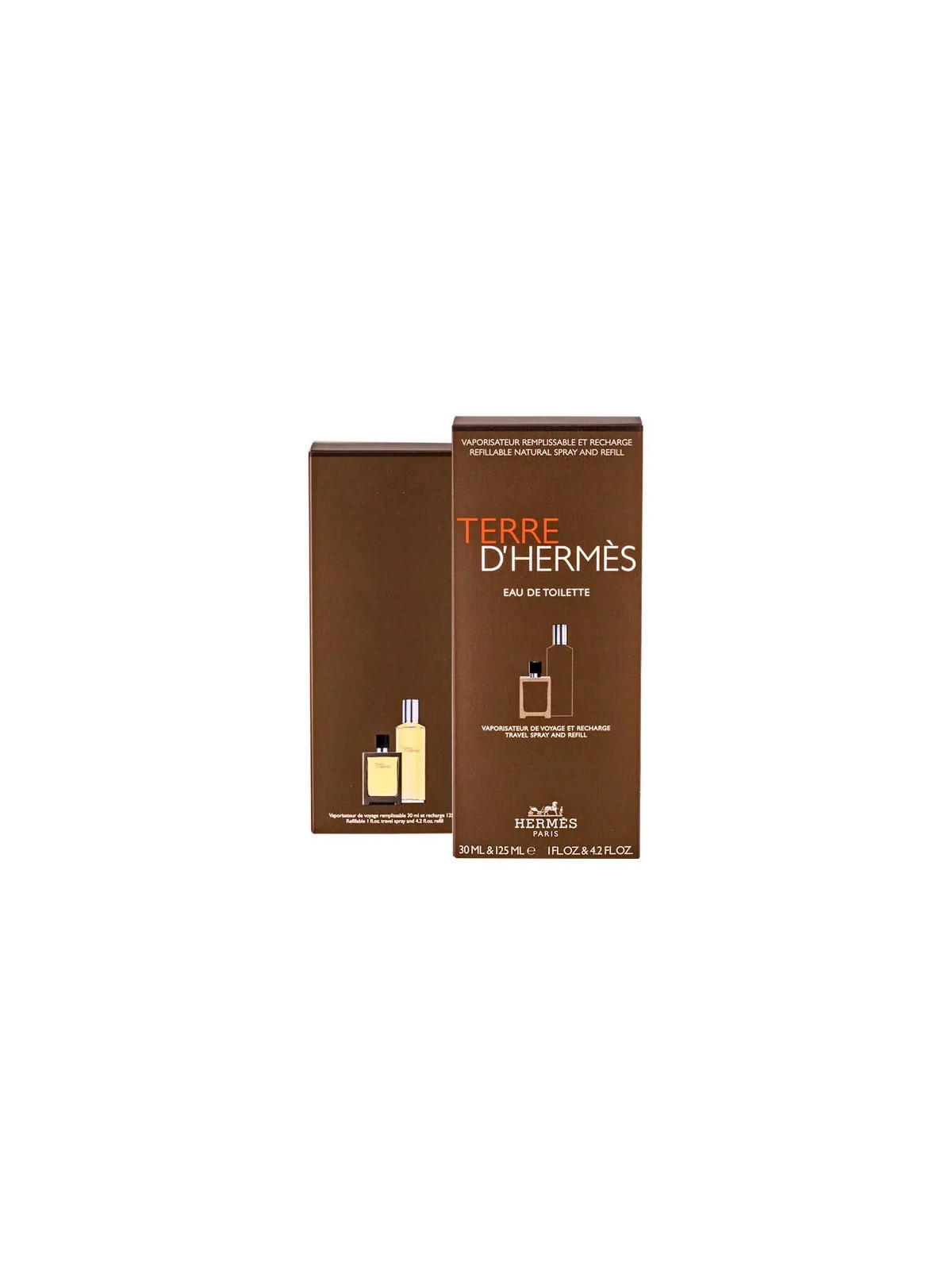 Hermès Terre d'Hermès est une eau de toilette masculine iconique présentée ici en coffret avec un format voyage offert. Cette fragrance signée Jean-Claude Ellena capture l'essence de la terre et de la matière dans une composition boisée et minérale unique.