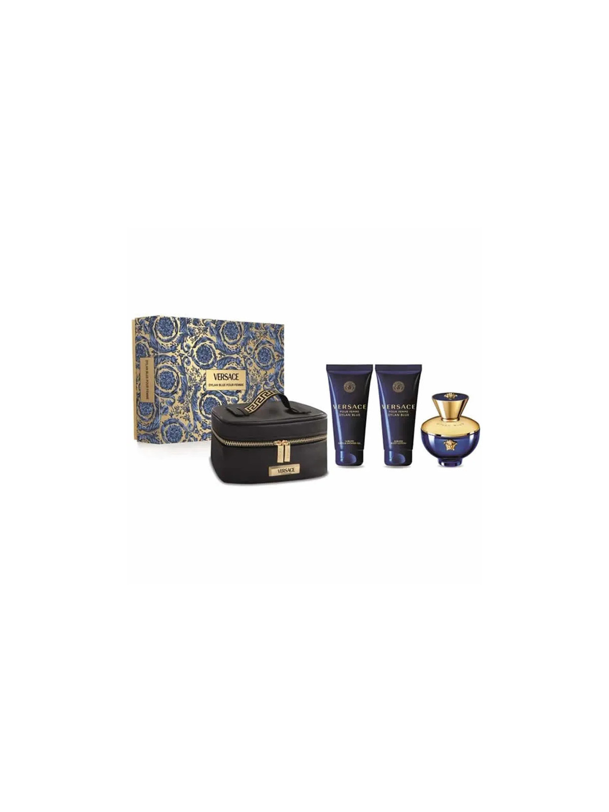 Le coffret Versace Pour Femme Dylan Blue réunit l'eau de parfum 100ml et deux produits complémentaires pour une expérience parfumée luxueuse et complète. Cette fragrance incarne la féminité sensuelle et moderne selon Versace.