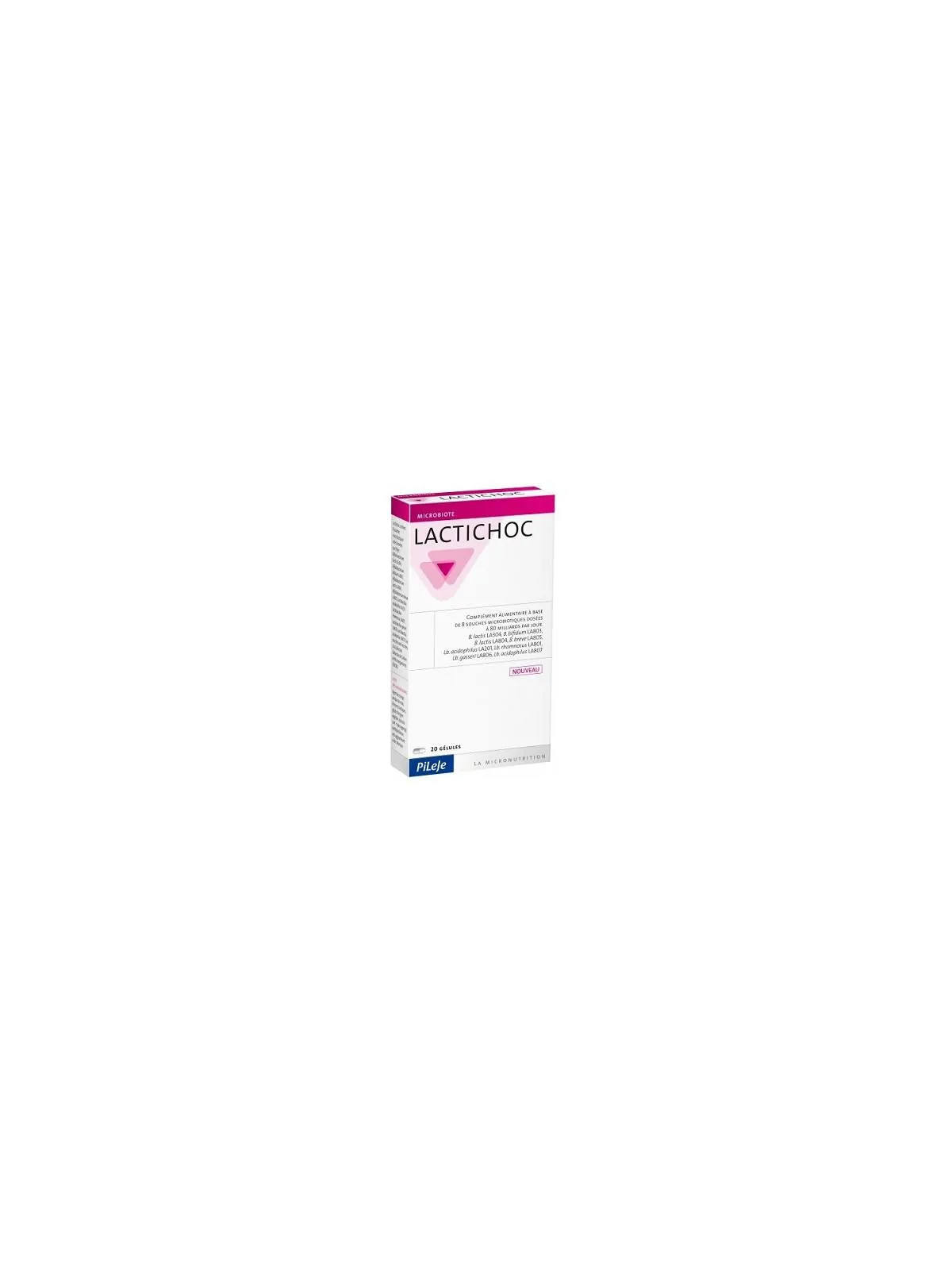 Pileje Lactichoc 20 Gélules est un probiotique de très haute concentration développé par les laboratoires Pileje pour une restauration intensive de la flore intestinale. Avec 20 milliards de ferments lactiques par gélule, c'est l'un des probiotiques les plus puissants de la gamme.