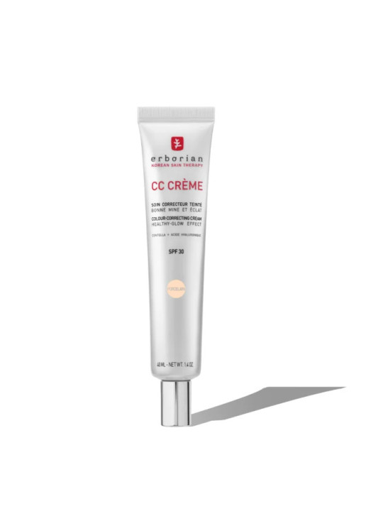 La CC Crème Erborian Soin Correcteur Teinté SPF30 Porcelain en 40ml est le soin teinté iconique de la marque franco-coréenne, décliné dans la teinte la plus claire de la gamme. Erborian puise dans le meilleur de la K-Beauty pour offrir un produit multifonction qui sublime les peaux les plus claires.
