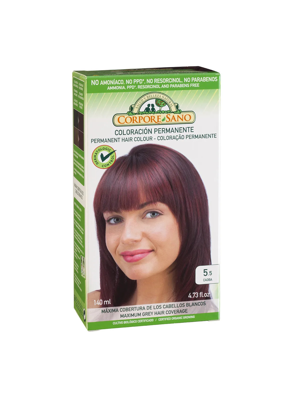 La Coloration Bio teinte 5.5 Acajou de Corpore Sano est une coloration capillaire certifiée biologique qui offre une magnifique nuance acajou, chaude et lumineuse. Alliant performance colorante et respect du cheveu, elle est formulée à partir d'ingrédients d'origine naturelle et biologique.