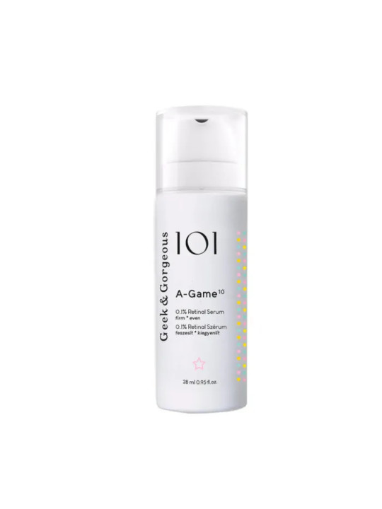 Le A-Game 10 de Geek & Gorgeous est un sérum anti-âge avancé formulé avec 0,1% de rétinal (rétinaldéhyde), une forme de vitamine A particulièrement efficace. Cette marque hongroise s'est imposée comme une référence dans le domaine du skincare performant et accessible.