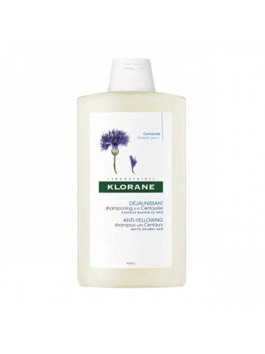 Le Shampooing à la Centaurée de Klorane est un soin lavant spécialement formulé pour les cheveux blancs, gris et blonds platine. Enrichi en extrait de centaurée bio, il neutralise les reflets jaunes indésirables et ravive l'éclat naturel des chevelures claires.