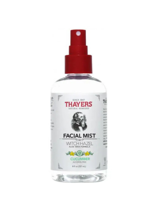La Brume Faciale Thayers au Concombre 237ml est un soin tonifiant en spray formulé avec de l'hamamélis et de l'extrait de concombre. Thayers, marque américaine fondée en 1847, est la référence incontournable des toniques à l'hamamélis, utilisant des procédés traditionnels pour préserver toutes les propriétés de cette plante exceptionnelle.