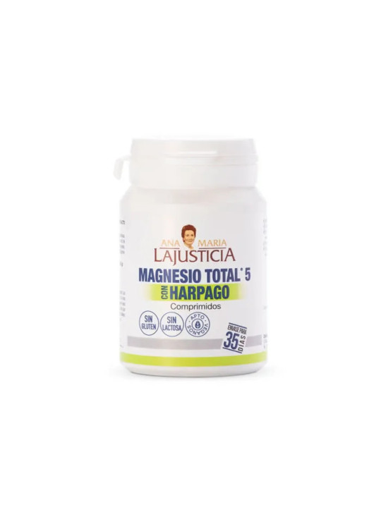 Ana María Lajusticia Magnésium Total 5 avec Griffe du Diable est un complément alimentaire qui combine cinq formes de magnésium avec de l'extrait de griffe du diable (Harpagophytum). La marque Ana María Lajusticia est une référence en Espagne pour les compléments alimentaires à base de magnésium.