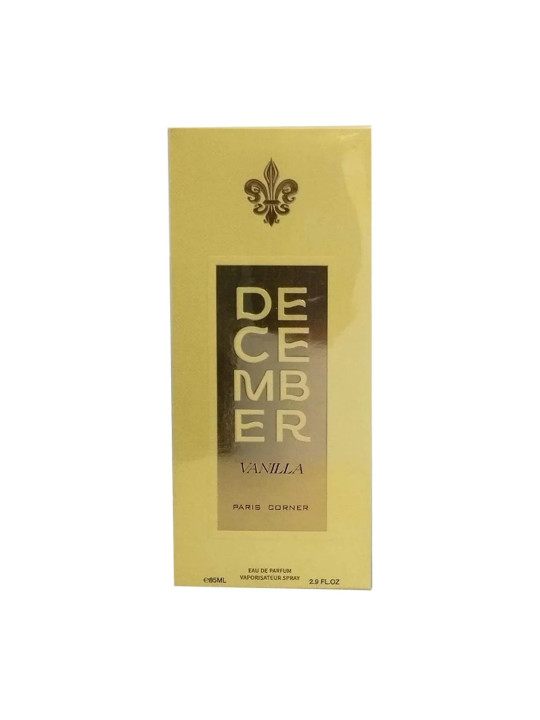 PARIS CORNER December Vanilla est une eau de parfum de 85ml qui évoque la chaleur et le réconfort des mois d'hiver. Cette fragrance gourmande et enveloppante célèbre la vanille dans toute sa splendeur, portée par des notes épicées et boisées.
