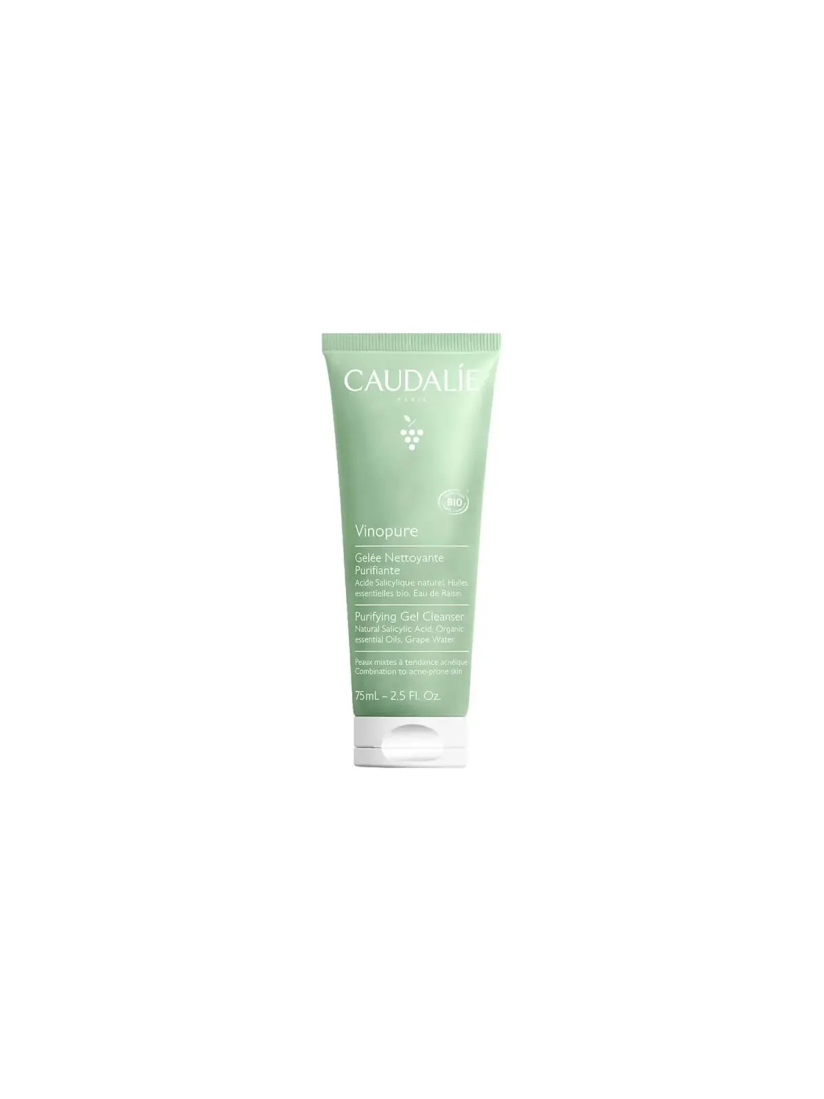 La Gelée Nettoyante Purifiante Vinopure de Caudalie est un soin nettoyant formulé spécifiquement pour les peaux mixtes à grasses sujettes aux imperfections. La marque bordelaise Caudalie est pionnière dans l'utilisation des polyphénols de raisin en cosmétique.