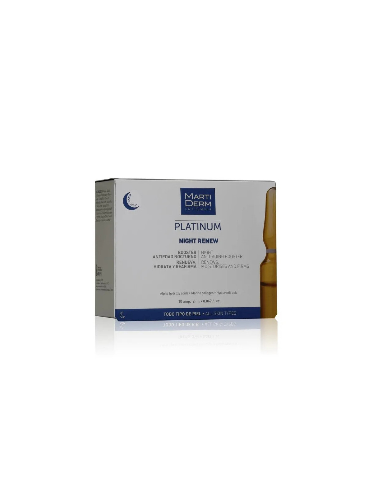 Les ampoules MartiDerm Platinum Night Renew, boîte de 10 ampoules de 2ml, sont un soin de nuit anti-âge intensif développé par le laboratoire espagnol MartiDerm. Ces ampoules exploitent le pouvoir régénérant de la nuit pour un renouvellement cellulaire optimal et une peau visiblement rajeunie.