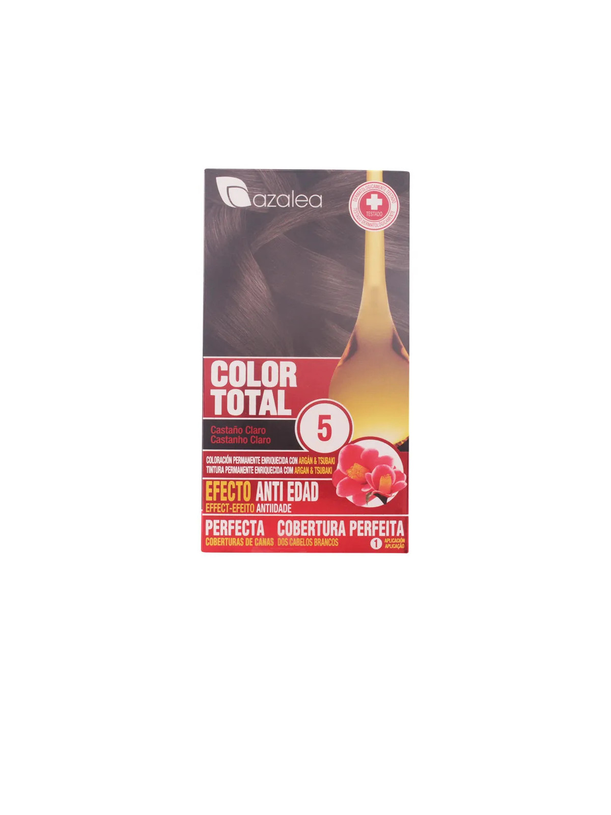 Azalea Couleur Total nuance 5 est une coloration permanente châtain clair qui offre une couverture complète des cheveux blancs et une couleur riche et durable. Cette coloration professionnelle permet d'obtenir un résultat naturel et lumineux à domicile.