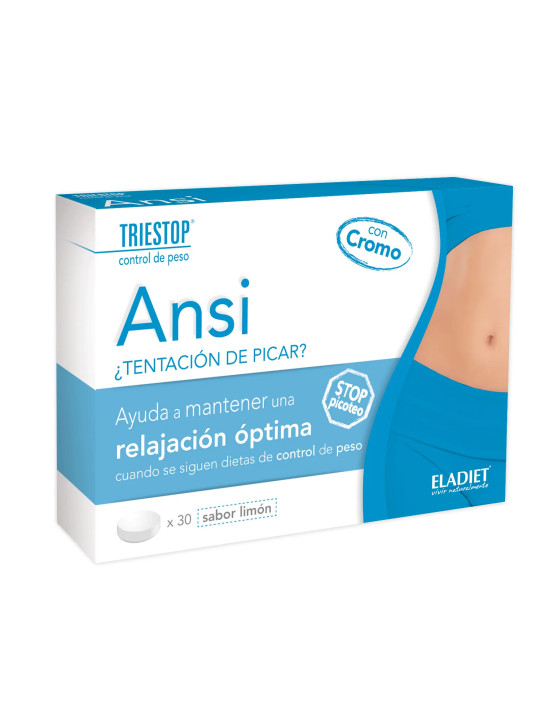 Eladiet Triestop Ansi Citron au Chrome 30 Comprimés est un complément alimentaire conçu pour aider à contrôler l'appétit et les envies de grignotage, dans le cadre d'un programme de gestion du poids. La gamme Triestop d'Eladiet est spécialement développée pour accompagner les personnes dans leur démarche minceur.