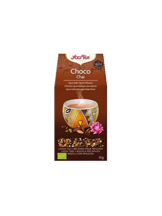 Yogi Tea Chocolat Chaï en format 90g est un mélange biologique en vrac qui associe la gourmandise du cacao aux épices traditionnelles du chaï indien. Cette recette originale offre une boisson réconfortante et savoureuse, parfaite pour les amateurs de saveurs chocolatées et épicées.
