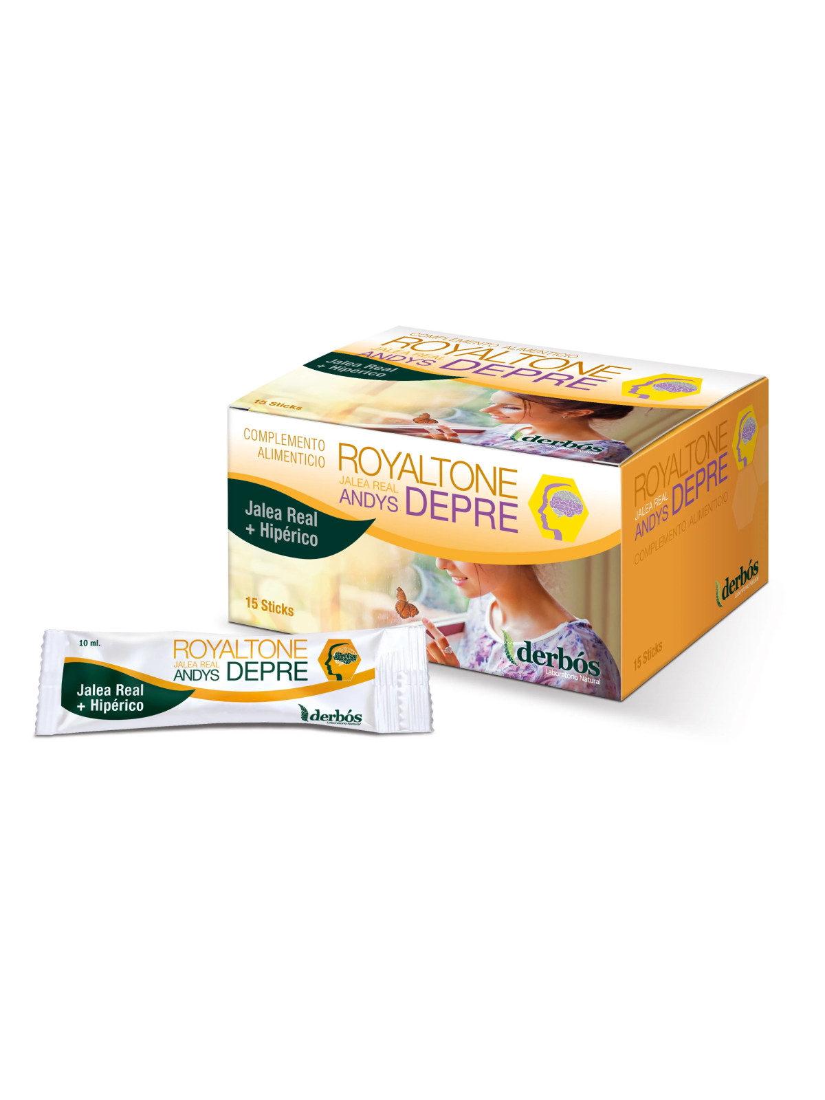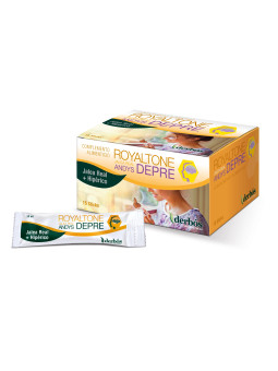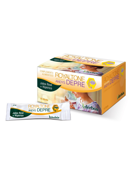 Royaltone Andy's Dépré s'adresse aux personnes traversant des périodes de baisse de moral, de déprime saisonnière ou de manque d'entrain. Le format sticks est pratique et facile à consommer. Prendre 1 stick par jour, pur ou dilué dans un verre d'eau, de préférence le matin. Consultez un médecin si les symptômes persistent.