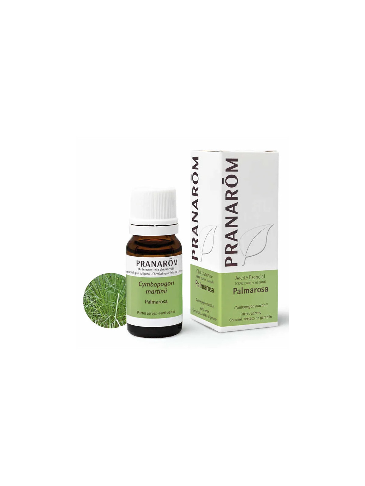 Pranarôm Palmarosa est une huile essentielle chémotypée de Cymbopogon martinii, proposée par le laboratoire Pranarôm en flacon de 10 ml. Cette huile essentielle est 100% pure, naturelle et intégrale, obtenue par distillation à la vapeur d'eau de la plante entière.