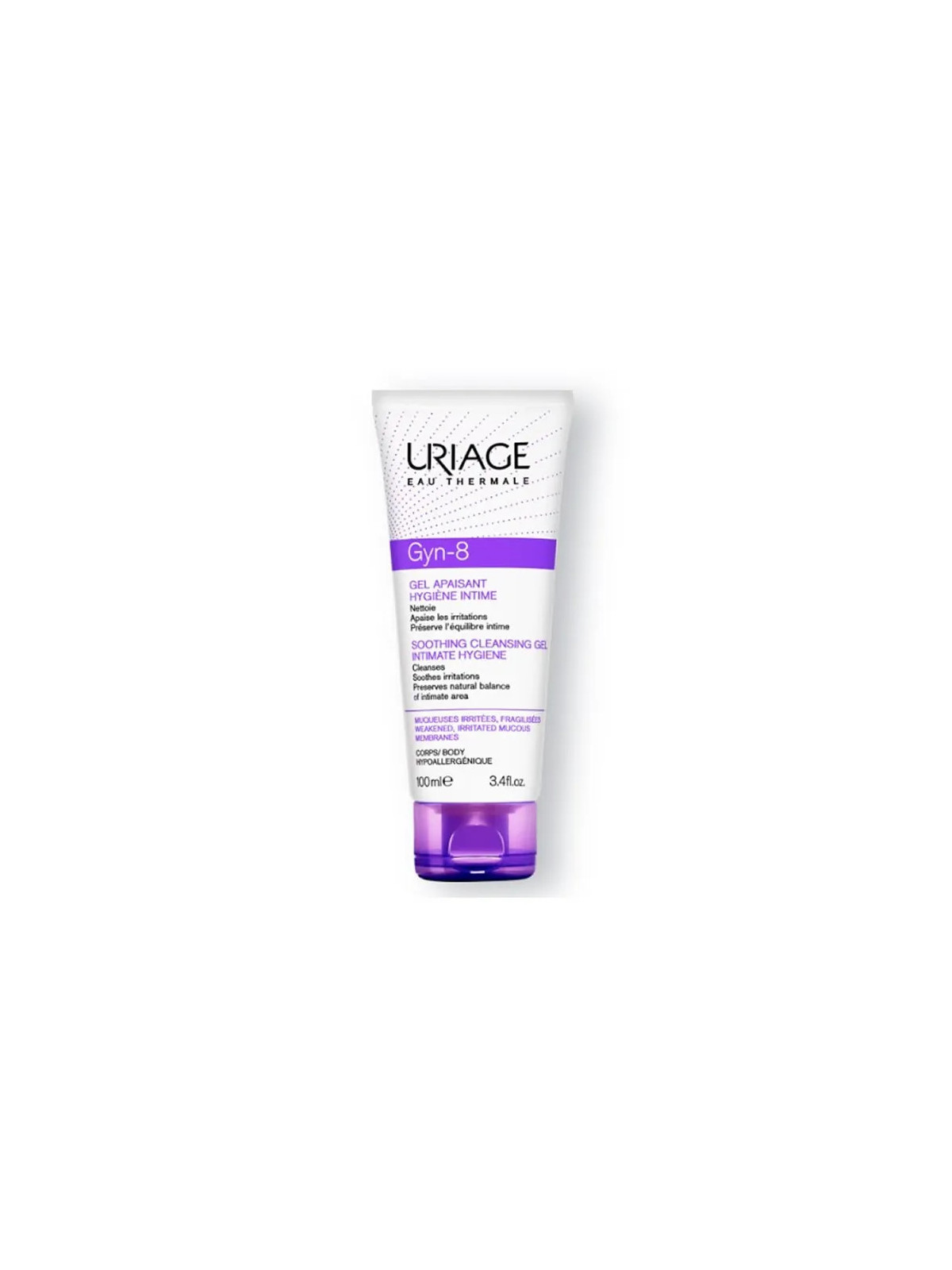 Le Gel Apaisant Hygiène Intime Gyn-8 d'Uriage est un soin lavant intime spécialement formulé pour soulager les irritations et inconforts de la zone intime. Présenté en tube de 100ml, il offre un nettoyage doux et apaisant au pH alcalin de 8.