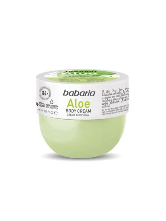 La Babaria Aloe Crème pour le Corps est un soin hydratant corporel enrichi en aloe vera, un actif végétal aux propriétés hydratantes, apaisantes et régénérantes reconnues. Babaria, marque espagnole spécialisée dans les soins à base d'ingrédients naturels, propose ce format généreux de 400 ml pour un usage quotidien familial.