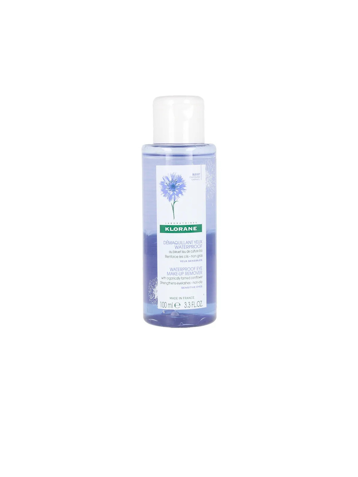Formulé avec des actifs d'origine végétale chers à Klorane, ce démaquillant est enrichi en bleuet, connu pour ses propriétés apaisantes et décongestionnantes. La formule est testée sous contrôle ophtalmologique et convient aux yeux sensibles ainsi qu'aux porteurs de lentilles de contact.