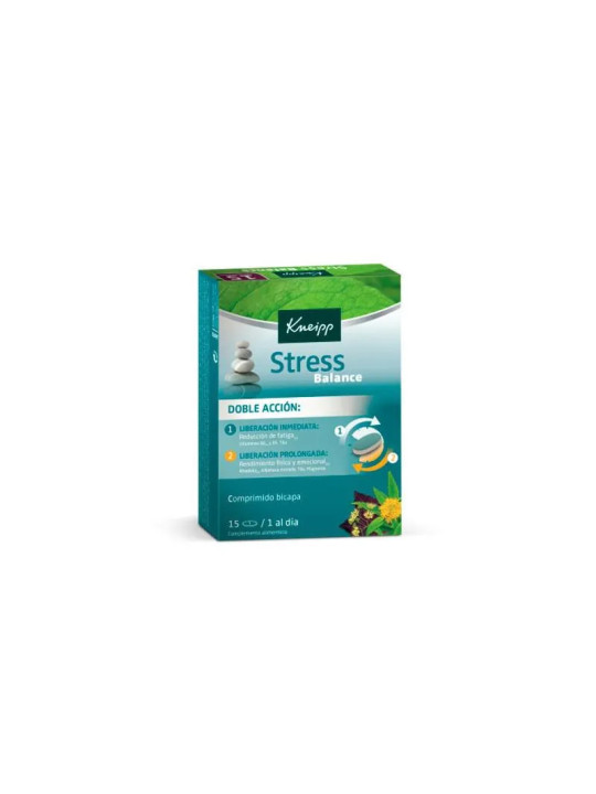 Kneipp Stress Balance est un complément alimentaire présenté en boîte de 15 comprimés, formulé pour aider à gérer le stress et favoriser la détente. Kneipp allie tradition phytothérapique allemande et recherche moderne pour des produits naturels efficaces.