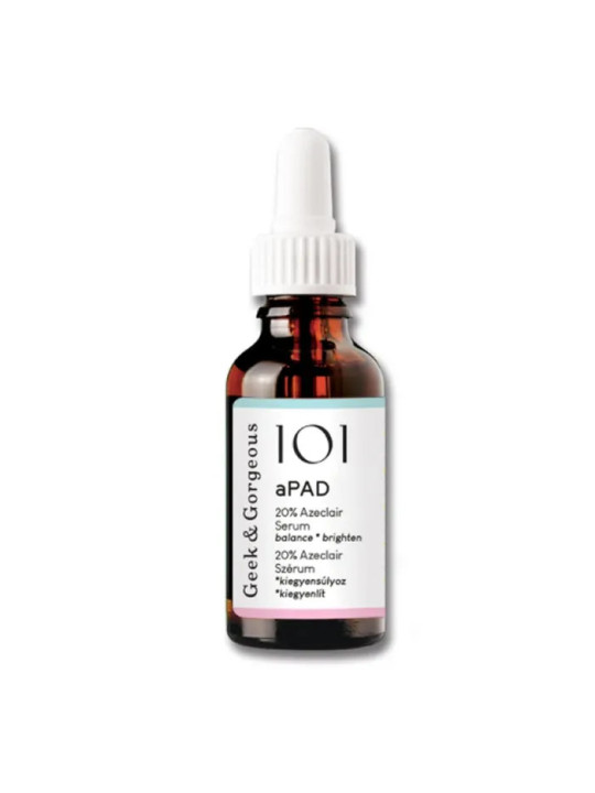 Le Geek & Gorgeous APad 30ml est un sérum à base d'acide azélaïque, un actif multi-cible reconnu pour ses propriétés anti-imperfections, anti-rougeurs et éclaircissantes. Geek & Gorgeous, marque skincare axée sur la science et la transparence des formulations, propose ici un soin hautement efficace.
