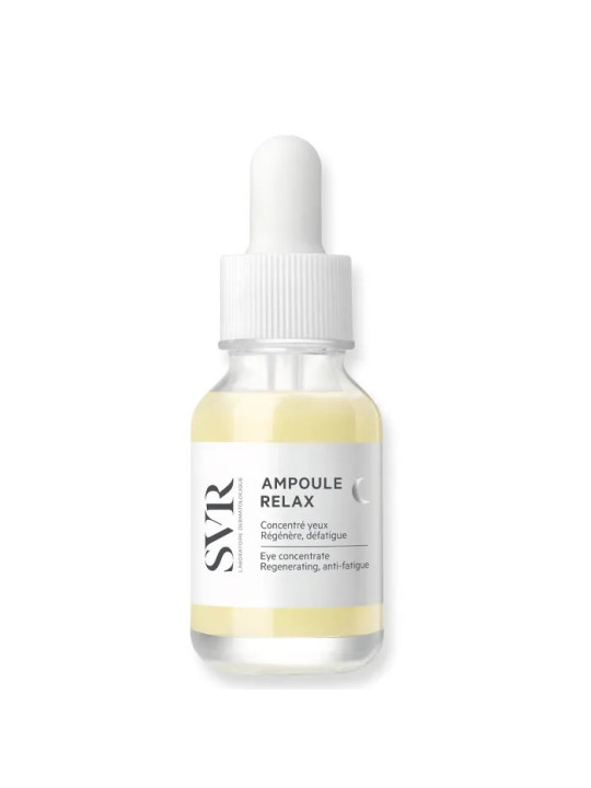 Le SVR Ampoule Relax est un concentré contour des yeux spécialement conçu pour agir pendant la nuit. Ce soin nocturne de SVR, laboratoire dermatologique français, cible les signes de fatigue accumulés au cours de la journée pour régénérer et apaiser la zone délicate du contour de l'oeil.