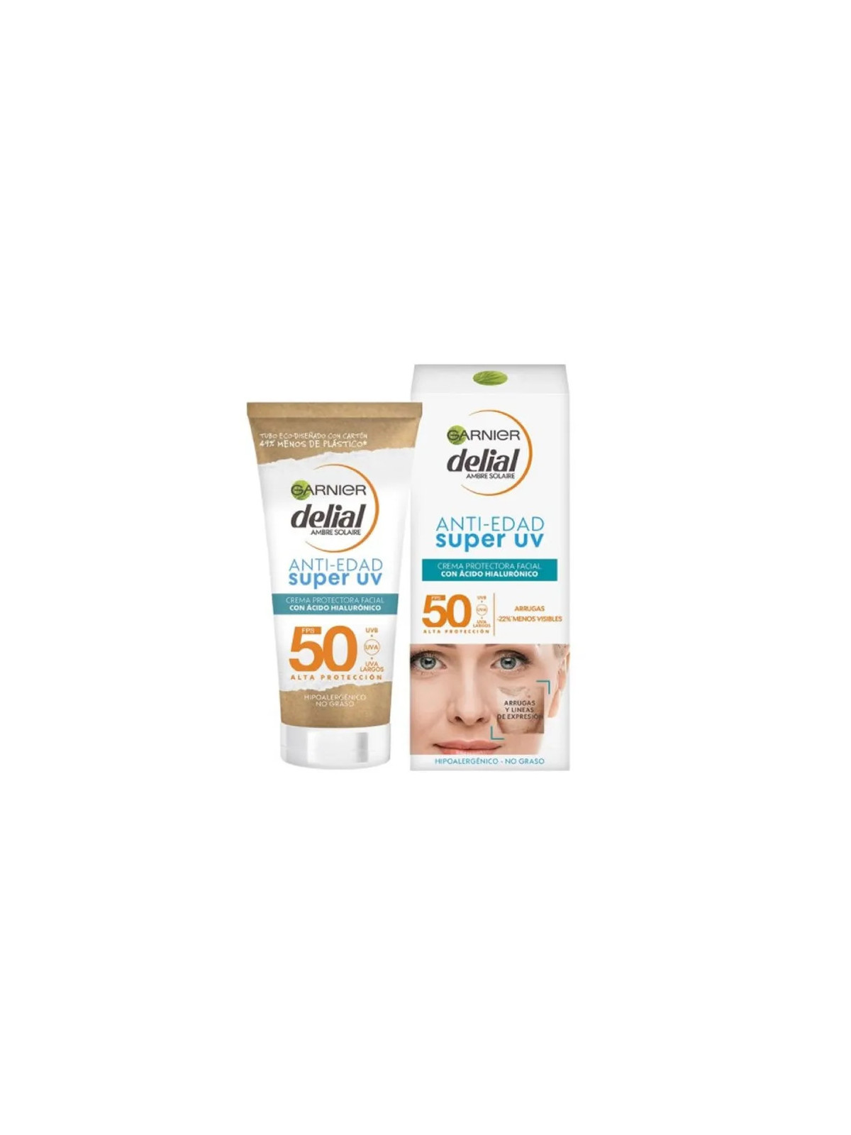 La Crème Protectrice Visage Anti-Âge Super UV SPF50 de Delial (Garnier) est un soin solaire quotidien qui combine haute protection solaire et action anti-âge. Delial, marque solaire de référence, propose un produit deux-en-un qui protège la peau des UV tout en prévenant le photovieillissement.