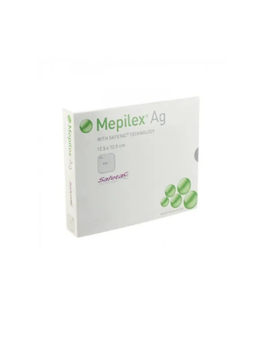 Le pansement Mepilex Ag de SAFETAC est un pansement mousse antimicrobien de technologie avancée, imprégné d'argent pour une action antibactérienne durable. Ce format de 5 unités de 12,5 x 12,5cm convient au traitement des plaies de taille moyenne nécessitant une protection antimicrobienne.