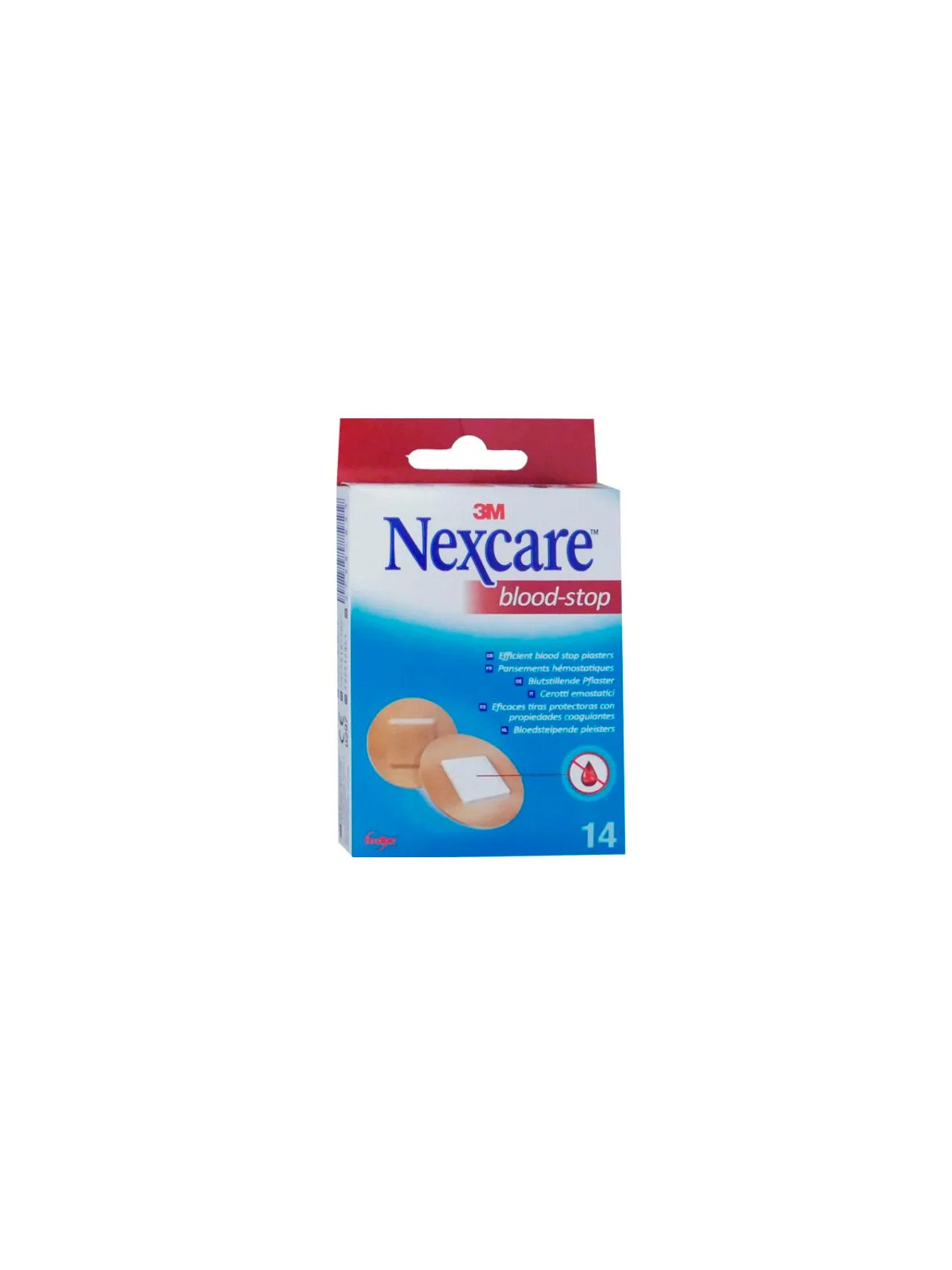 Les Nexcare Blood Stop de 3M sont des pansements hémostatiques spécialement conçus pour aider à arrêter rapidement les saignements des petites coupures et blessures. La boîte contient 14 pansements pour un usage familial.