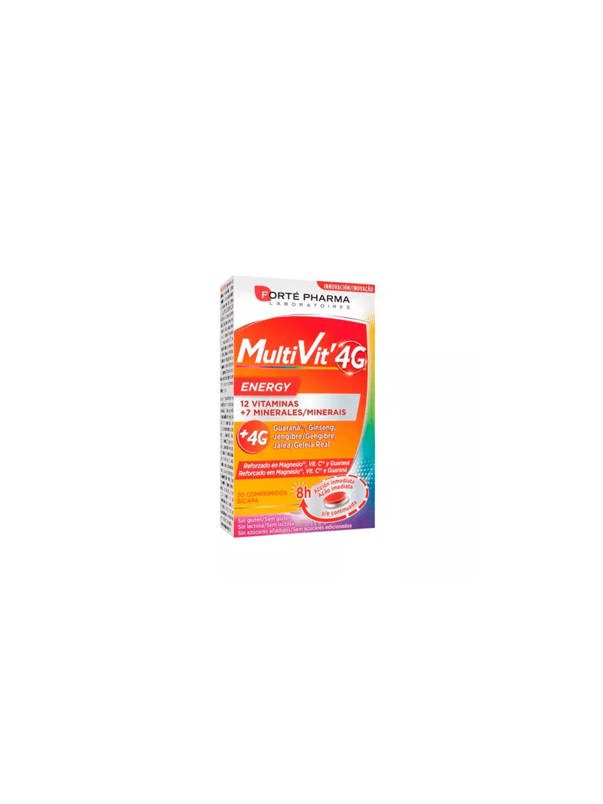 Multivit 4G Énergie de Forté Pharma est un complément alimentaire multivitaminé conçu pour les personnes souhaitant retrouver tonus et énergie au quotidien. Sa formule concentrée en vitamines et minéraux aide à lutter contre la fatigue et à maintenir une bonne vitalité.