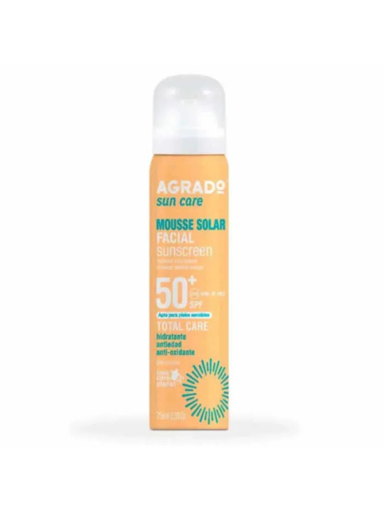 La Mousse Facial Sunscreen SPF50 d'Agrado est un écran solaire visage innovant sous forme de mousse offrant une très haute protection SPF50 contre les rayons UV. La marque Agrado propose ici un format original et agréable pour la protection quotidienne du visage.