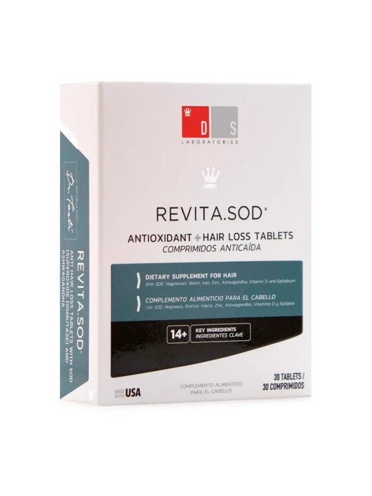 Le complément alimentaire DS Revita SOD Antioxydant + Anti-Chute de Cheveux est une formule orale conçue pour lutter contre la chute des cheveux et protéger la fibre capillaire grâce à son action antioxydante. DS Laboratories est une marque spécialisée dans les solutions capillaires innovantes basées sur la recherche scientifique.