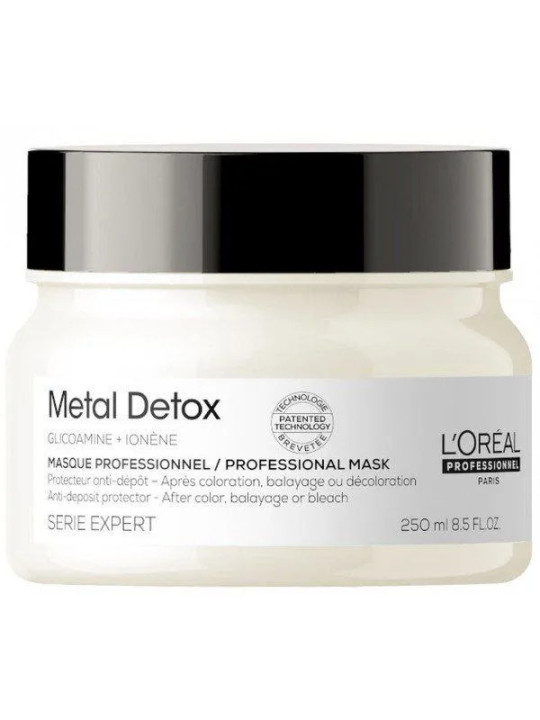 Le Metal Detox Professional Mask de L'Oréal Professionnel est un masque capillaire professionnel de 500ml conçu pour neutraliser les métaux présents dans la fibre capillaire. L'Oréal Professionnel, à la pointe de la recherche capillaire, a développé la gamme Metal Detox pour répondre à une problématique méconnue : l'accumulation de métaux dans les cheveux.