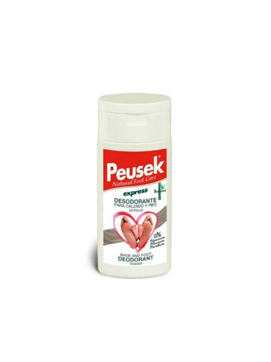 La Poudre Déodorante Peusek Express 40g est un soin spécifique pour lutter contre la transpiration excessive et les odeurs des pieds. Peusek, marque spécialisée dans l'hygiène et le soin des pieds, offre avec ce produit une solution efficace aux problèmes de sudation plantaire.