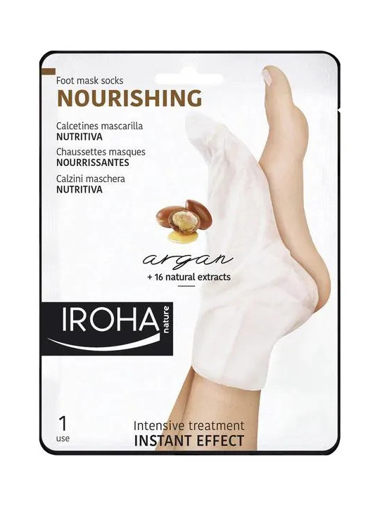 Les Chaussettes Nourrissantes Iroha Nature sont un masque soin innovant infusé d'huile d'argan et de macadamia pour nourrir intensément les pieds secs et abîmés. Ce soin en une seule application offre des résultats visibles immédiatement.