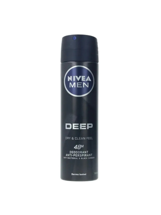 Le déodorant Nivea Men Deep Black Carbon en spray offre une protection puissante et durable spécialement conçue pour les hommes actifs. Nivea, marque allemande de référence en soins de la peau depuis plus de 100 ans, propose avec cette gamme Deep une solution efficace contre la transpiration.