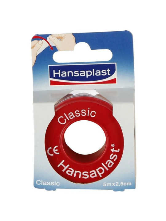 Le Sparadrap Classic Hansaplast est un indispensable de la trousse à pharmacie familiale. Cette bande adhésive de 5 mètres de long sur 2,5 cm de large permet de maintenir efficacement pansements, compresses et bandages en place.